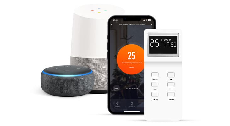 De heater bedien je eenvoudig via de FlinQ app op je telefoon of tablet. Je hem ook bedienen met de meegelevrde afstandsbediening, via de knoppen op het apparaat zelf of met je stem via Google Home en Amazon Alexa.