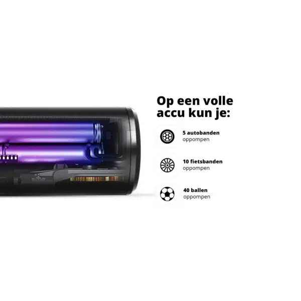 Whether it’s your bicycle tire that could use some extra air, your car’s tire pressure needs a little boost, or the air mattress needs to be inflated quickly: this cordless air compressor from FlinQ can do it all. This electric compressor is easy to take anywhere. The pump is equipped with various attachments, making the device suitable for charging both car tires and soccer balls. The air compressor can create a maximum air pressure of 10.3 bar, more than enough for the devices you are going to use it for. You no longer have to gasp for air, the compressor does the work itself!