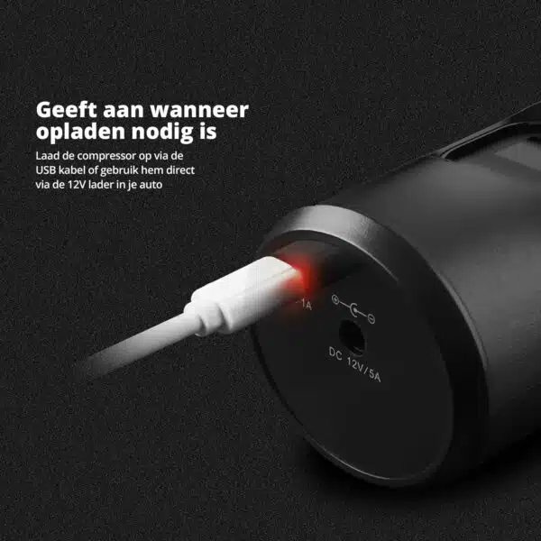 Is the large battery (6000 mAh) of the air compressor empty after all those pumping sessions? Then you can easily charge the device via the included USB cable. Connect it to an adapter and within a few hours the pump is ready for use again. Or use it directly in the car, caravan or camper with the included 12V cable for direct use. Without losing battery capacity.