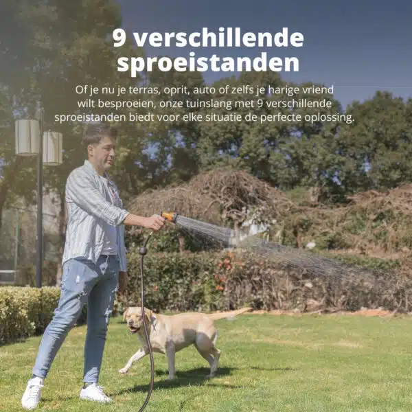 Whether you want to spray your patio, driveway, car, or even your furry friend, our garden hose with 9 different spray settings offers the perfect solution for every situation. This versatile spray head makes it possible to take your garden care to the next level.