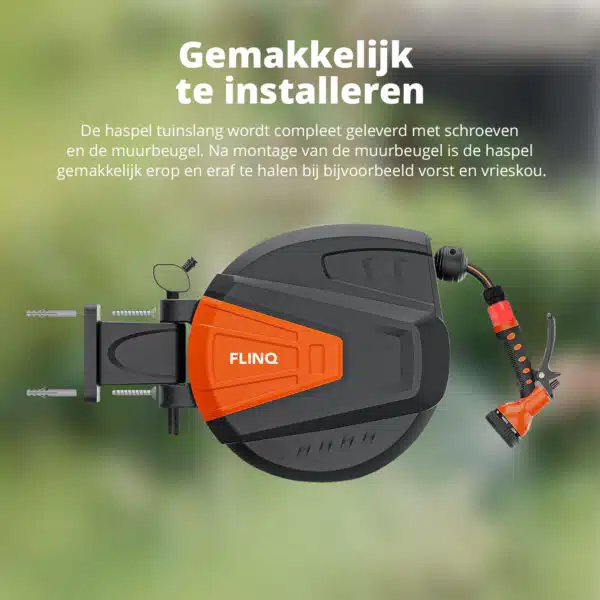 With the FlinQ reel, you don’t have to worry about unwanted hose retraction. Once you’ve pulled the hose to the desired length, the position automatically locks, preventing kinking and tangling, and keeping the hose firmly in place.
