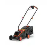De grasmaaier is uitgerust met gazonvriendelijke wielen met extra grip en een diameter van 13,5 cm, waardoor je moeiteloos over oneffenheden en langs obstakels manoeuvreert. De ideale werkhoogte en vergrendelknop zorgen voor comfortabel gebruik, ook bij langere maaisessies.