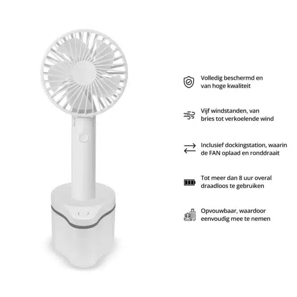 โ Inclusief dockingstation, waarin de FAN wordt opgeladen en ronddraait