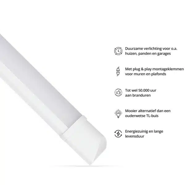 LED-verlichting is enorm zuinig ten opzichte van de traditionele Tl-buizen en andere verlichting. Dat is natuurlijk gunstig voor het milieu, maar al helemรกรกl voor je portemonnee! De aanschafkosten heb je binnen korte tijd terugverdiend en dan hoef je voorlopig ook geen nieuwe meer aan te schaffen. Deze balken hebben namelijk een levensduur van meer dan 50.000
