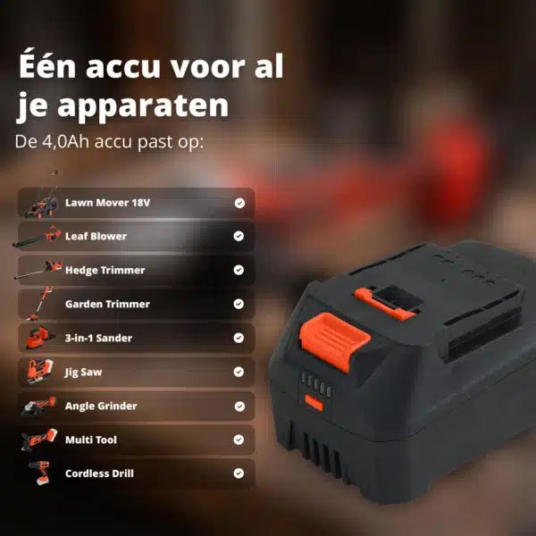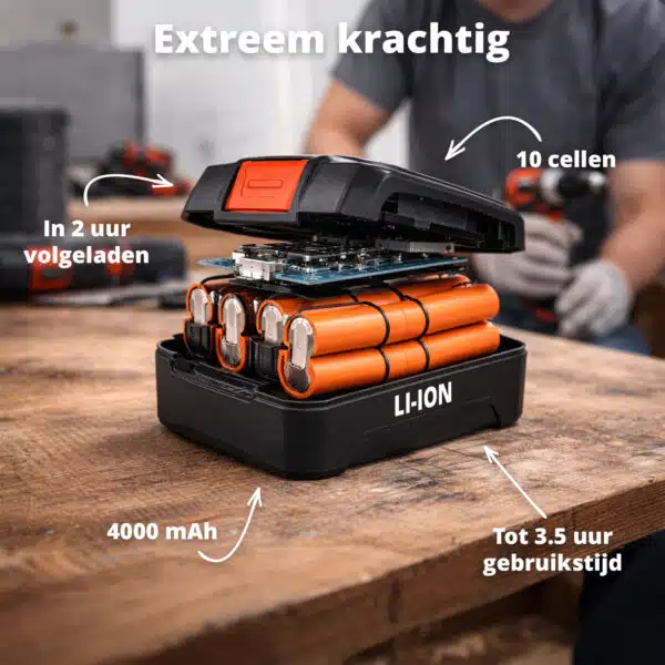 – 20V Li-ion accu met 4000 mAh capaciteit