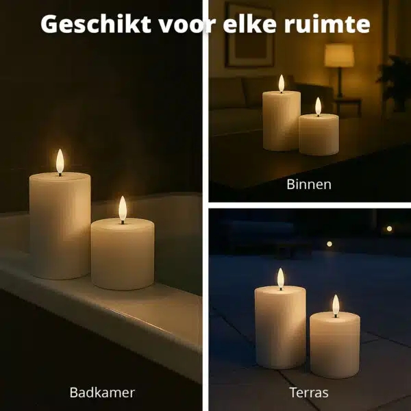De LED-kaarsen zijn niet alleen perfect voor op het terras of balkon, maar ook ideaal in de badkamer of als stijlvolle decoratie in de woonkamer. Met één druk op de knop bepaal je de sfeer die bij het moment past van een romantisch diner tot een ontspannen avond in bad.