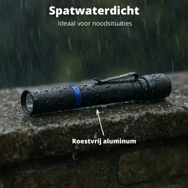De behuizing van hoogwaardig aluminium maakt deze zaklamp robuust en bestand tegen dagelijkse impact. Vallen, stoten of meedragen in je tas? Geen probleem. Dit model is ontworpen voor intensief, dagelijks gebruik of je nu in de bouw werkt, klust in de schuur of tijdens outdoor-activiteiten op pad bent.