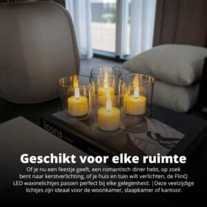 Of je nu een feestje geeft, een romantisch diner hebt, op zoek bent naar kerstverlichting, of je huis en tuin wilt verlichten, de FlinQ LED waxinelichtjes passen perfect bij elke gelegenheid. Deze veelzijdige lichtjes zijn ideaal voor de woonkamer, slaapkamer, kantoor, of zelfs de badkamer voor een rustgevende sfeer. Ze zijn niet waterdicht, dus gebruik ze buiten bereik van vocht. Creëer altijd de juiste ambiance met deze stijlvolle en functionele waxinelichtjes.