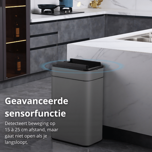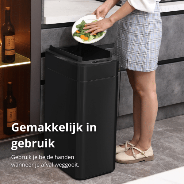 - Geautomatiseerd Gemak: Deksel sluit automatisch na 15 seconden voor optimale hygiëne.