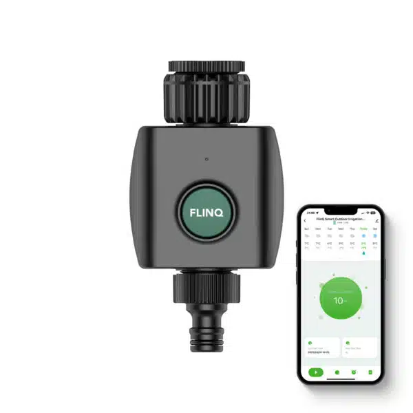 De slimme waterregelaar van FlinQ bedien je makkelijk en eenvoudig vanaf je telefoon. Gebruik daarvoor de FlinQ applicatie en je kunt vanaf waar je ook bent de bewatering van de planten in de gaten houden. Zeker met de steeds warmer wordende zomers in Nederland is het belangrijk dat je de bewatering van je planten goed onder controle hebt. En als we dan toch duurzaam bezig zijn; je voorkomt met de irrigatiecontrole ook dat je teveel water geeft.