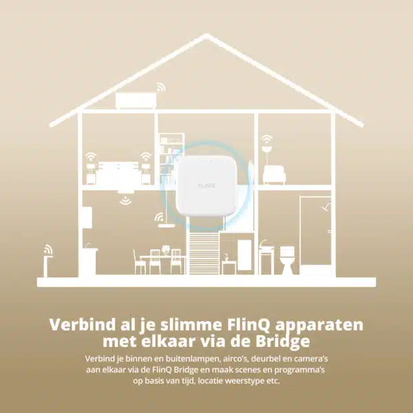 Alle FlinQ apparaten kun je bedienen met of zonder Smart Bridge. Voeg je de FlinQ Smart Bridge toe aan je slimme huis dan worden je apparaten nog slimmer en ontgrendel je een hoop nieuwe functies.