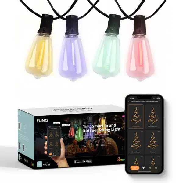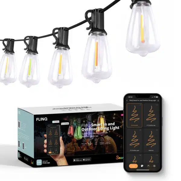 Met de mogelijkheid om te kiezen tussen warmwit en RGB-lichtkleuren, biedt de FlinQ Slimme Lichtslinger veelzijdigheid voor elke sfeer. Of je nu een gezellige, warme gloed wilt voor een ontspannen avond of kleurrijke verlichting voor een feest, deze lichtslinger past zich aan jouw wensen aan.