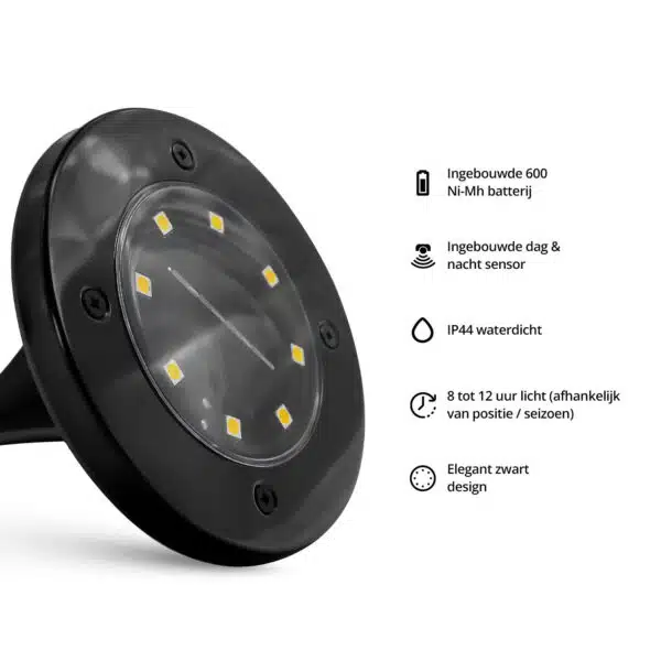 Deze Solar Grondspots zijn precies wat nog ontbreekt in je tuin. Een duurzame en stijlvolle grondlamp die je eenvoudig ter decoratie toevoegt aan je tuinpad of waar je ook wat extra licht verlangt. Deze lampjes zijn nuttig en leuk: ze zorgen voor zicht in het donker en geven iedere tuin een romantische sfeer. Door de automatische lichtsensor zijn ze ook nog eens zeer duurzaam.