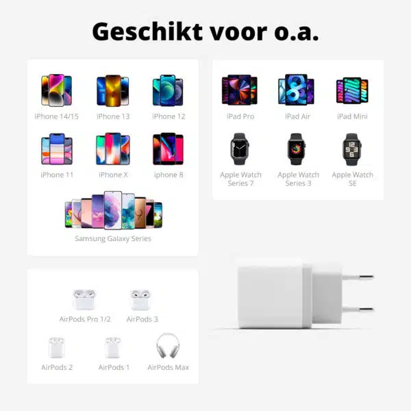 – Snelladen zonder compromissen โ Geschikt voor alle moderne smartphones met USB-C, waaronder Samsung, Google Pixel, iPhone(s) en meer.