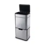 De prullenbak is uitgerust met drie verschillende afvalbakken. Daardoor kun je direct je afval scheiden en help mee aan een duurzamere wereld. De grote bak aan de bovenzijde van het product heeft een inhoud van 36 liter. De twee opvangbakken aan de onderzijde van de prullenbak hebben een inhoud van 12 liter. Deze bakken komen tevoorschijn als de lade wordt opengeschoven. Op deze manier heb je 60 liter aan prullenbak waarmee je gedurende een week je afval verzamelt.