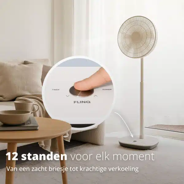 Met de ventilator van FlinQ creรซer je het windje in huis zoals jij het fijn vindt. Door middel van de 12 verschillende windsnelheden zit er altijd een stand tussen die fijn aanvoelt.