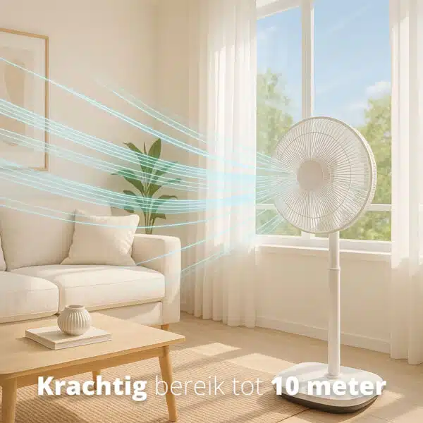 Wil je een grote woonruimte verkoelen? Dat is geen probleem met deze ventilator. Met een bereik van 10 meter heb je zelfs in de verste uithoeken van je woonkamer een heerlijk briesje. De ventilator is zo goed als geluidloos en dit maakt het ook perfect voor in de slaapkamer.